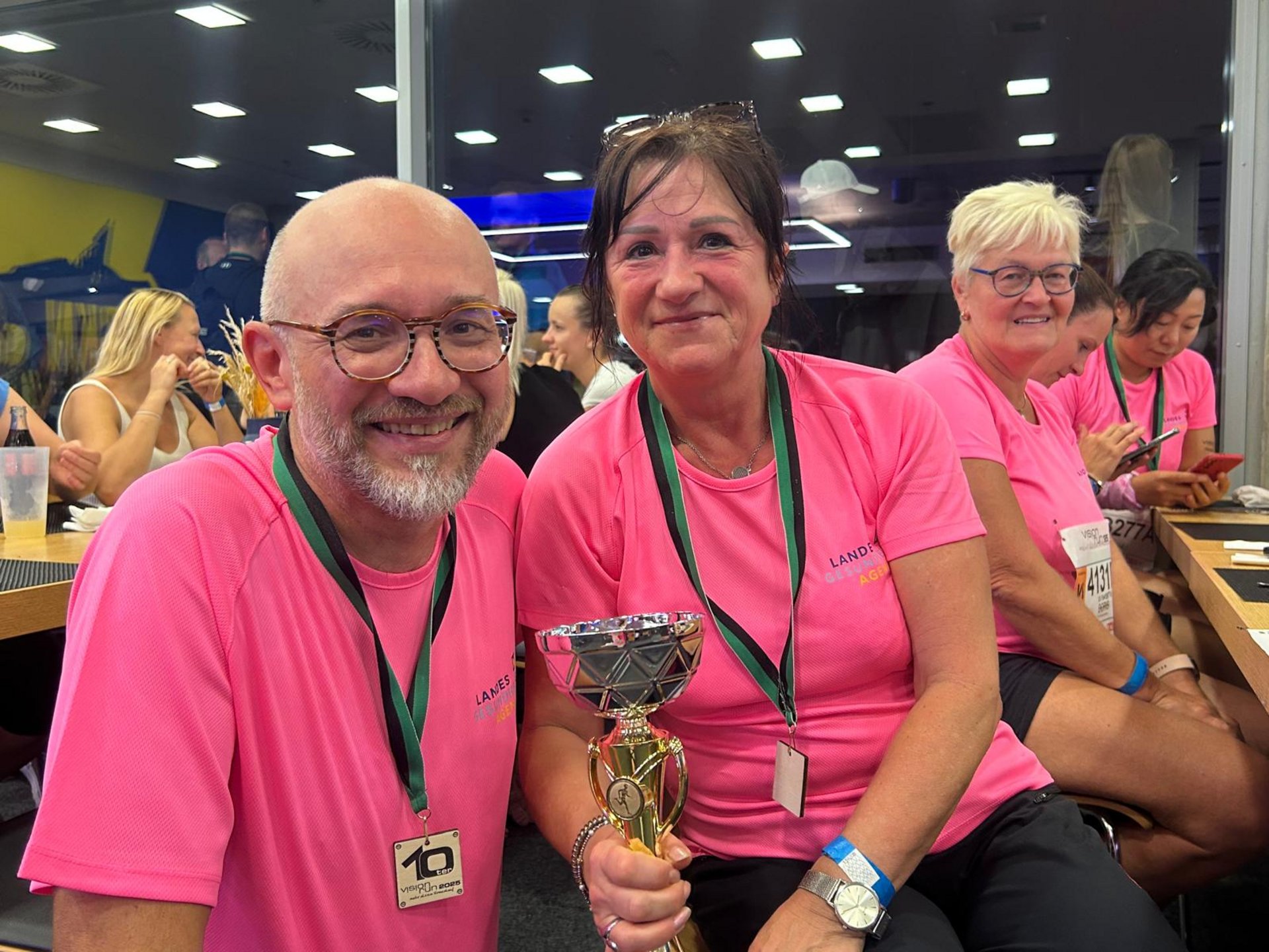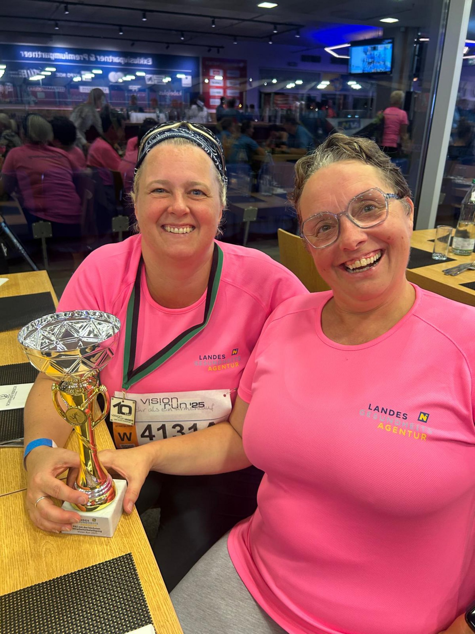 Mitarbeiterinnen und Mitarbeiter vom PBZ Herzogenburg machten beim großen Firmenlauf VISION RUN in St. Pölten am 04.09.2025 mit. Durch die Teilnahme werden soziale Projekte unterstützt und Spaß und Bewegung kommen natürlich auch nicht zu kurz. Insgesamt sind vom PBZ Herzogenburg 12 Teams zu je 3 Personen an den Start gegangen. Drei Teams haben es gewagt die 5 km zu laufen, die restlichen 9 Teams sind dieselbe Strecke bei den St. Pöltner Seen gewalkt. Insgesamt sind 36 Mitarbeiterinnen und Mitarbeiter aus Herzogenburg dabei gewesen, dadurch konnten wir nach 2023 wieder den Pokal in der Kategorie „meiste Starterinnen und Starter PBZ/PFZ“ ins Haus holen.